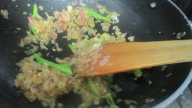 Now add green chillies, turmeric, ginger and garlic.  Fry them together.